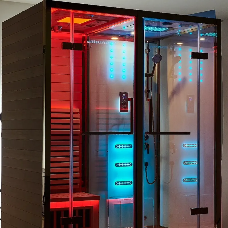 Equipado con paneles calefactores de cristal de carbono infrarrojos, combinados con función de ducha de vapor húmedo.