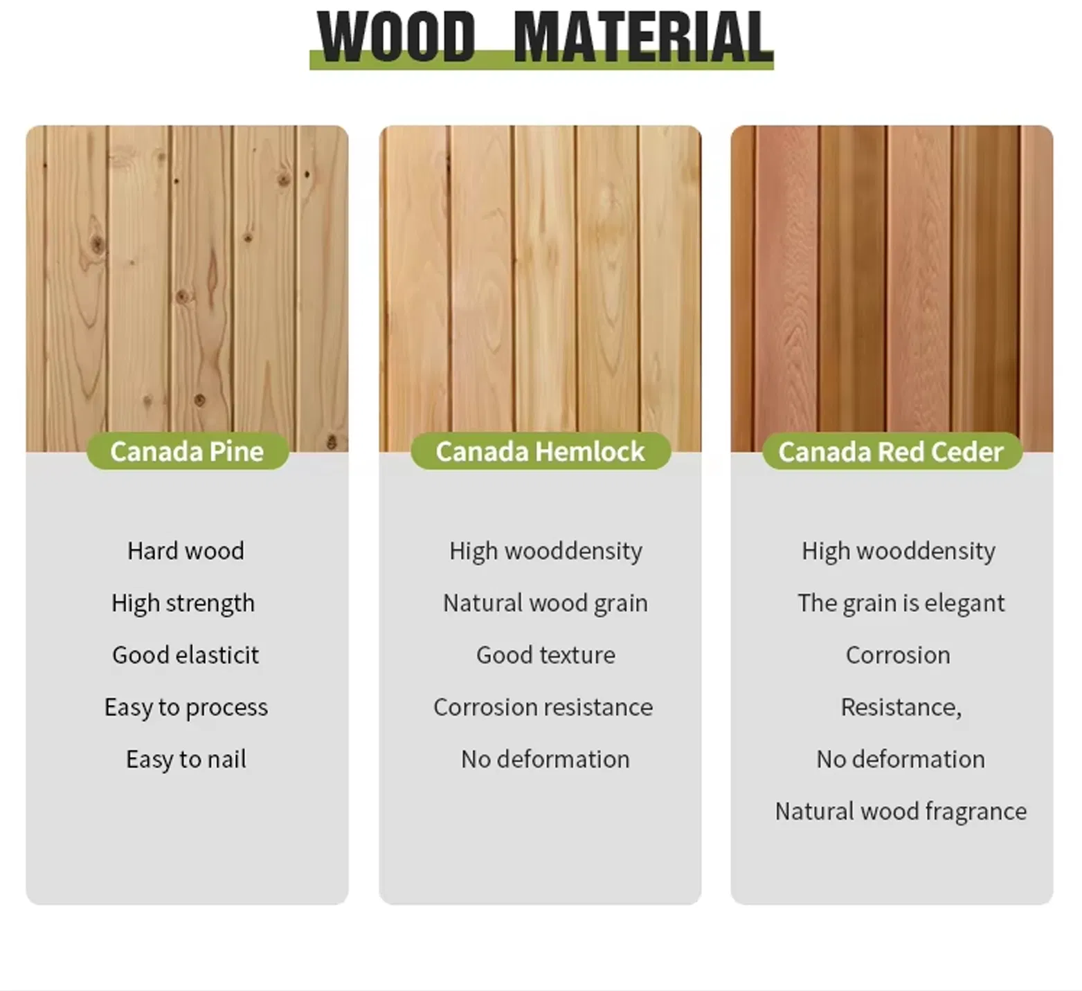 Cada tipo de madera se selecciona por sus beneficios únicos para adaptarse a su estilo de vida: