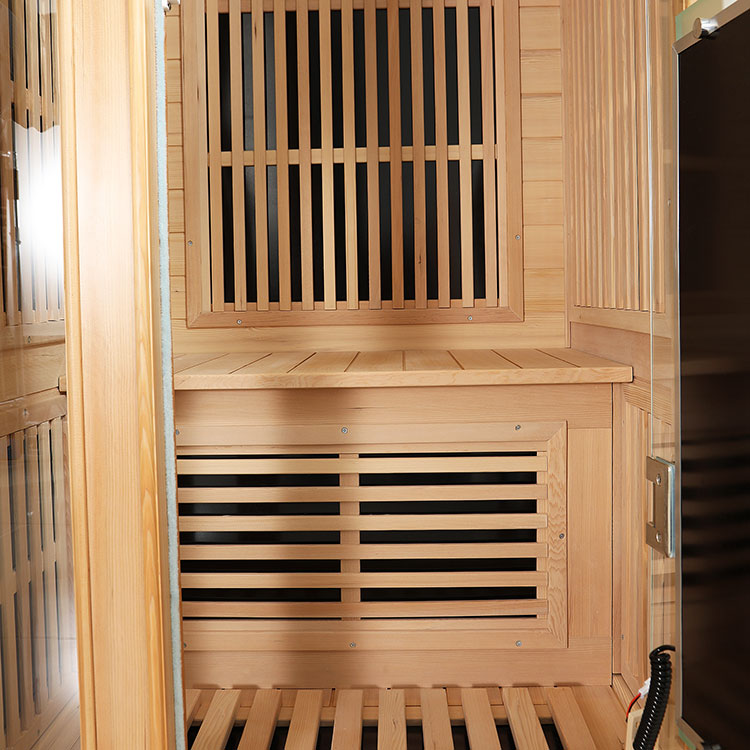La luz infrarroja se utiliza para generar calor en una cámara de vapor de sudor para tres personas. Las lámparas de infrarrojos, a menudo denominadas tratamiento de infrarrojos, calientan el cuerpo de adentro hacia afuera, lo que significa que las ondas de luz que penetran en la piel calentarán su cuerpo directamente. Considere cómo se siente su piel cuando sale en un día soleado. Las salas de vapor para tres personas son absolutamente seguras de usar y funcionan de manera similar para calentar el cuerpo, llegando a los músculos y nervios.